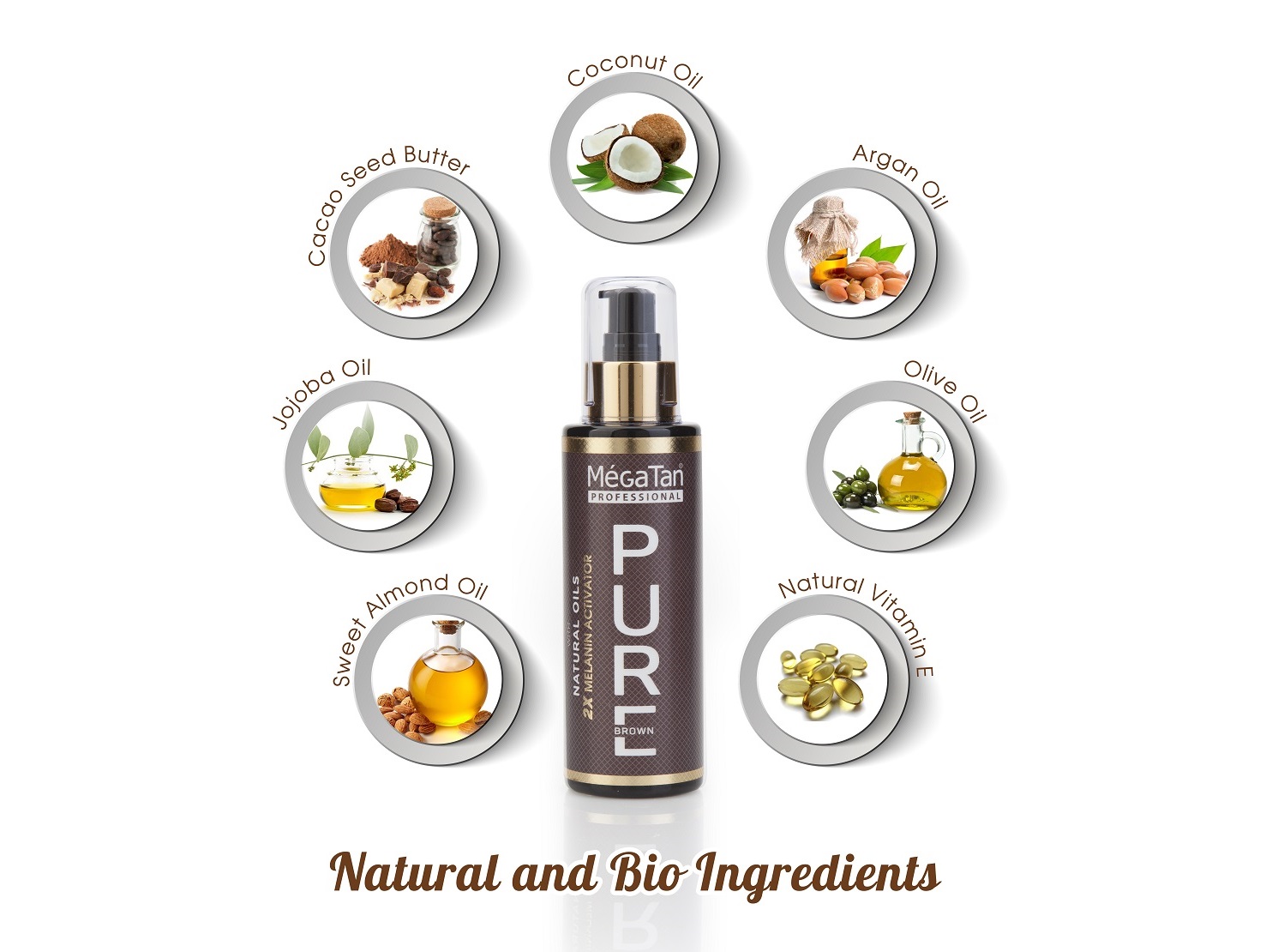 After applying Megatan Pure brown, the skin becomes brilliantly glossy, that reduce more the tanning time.