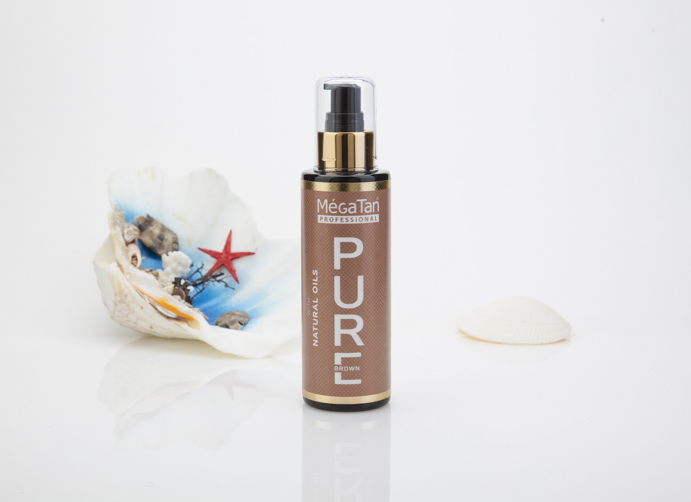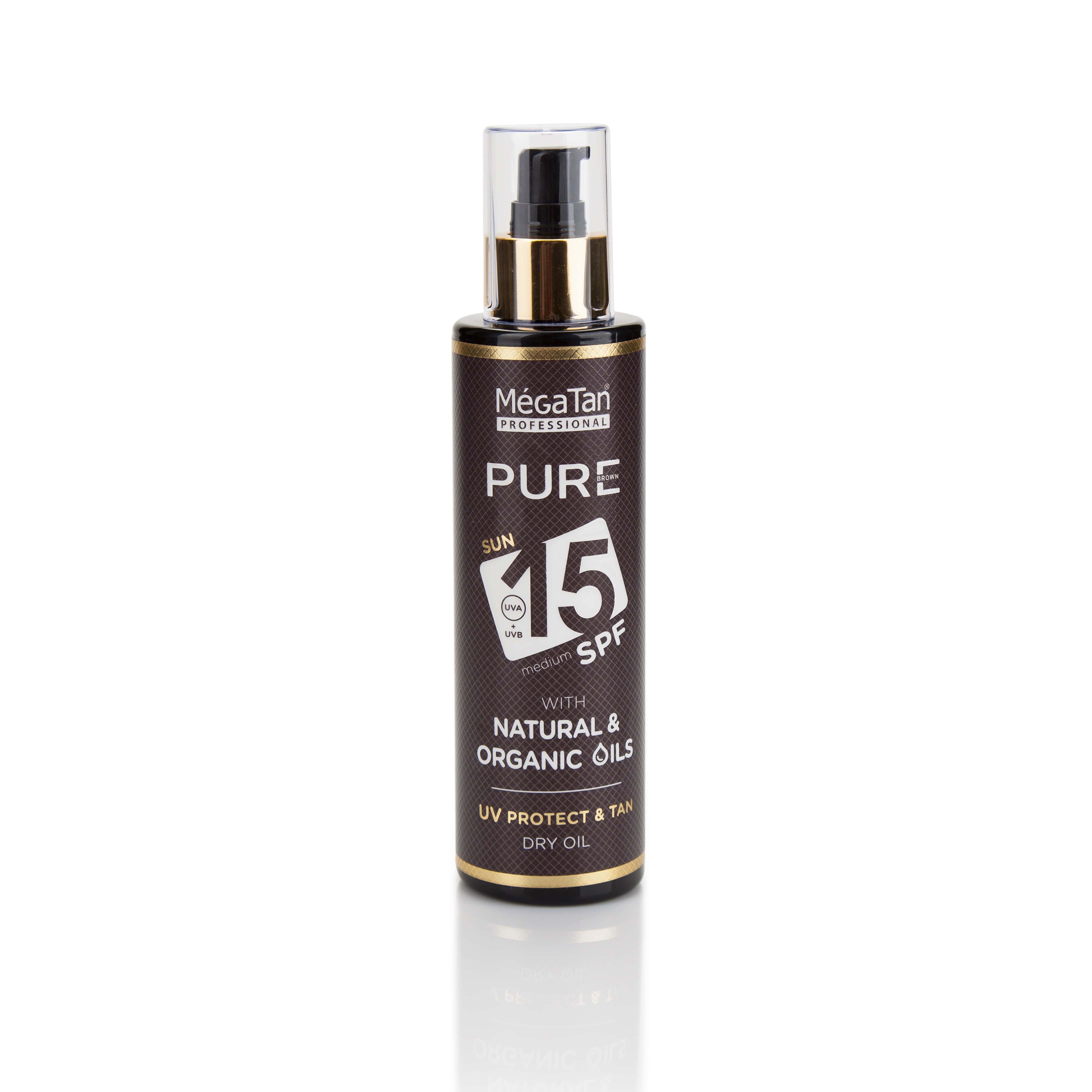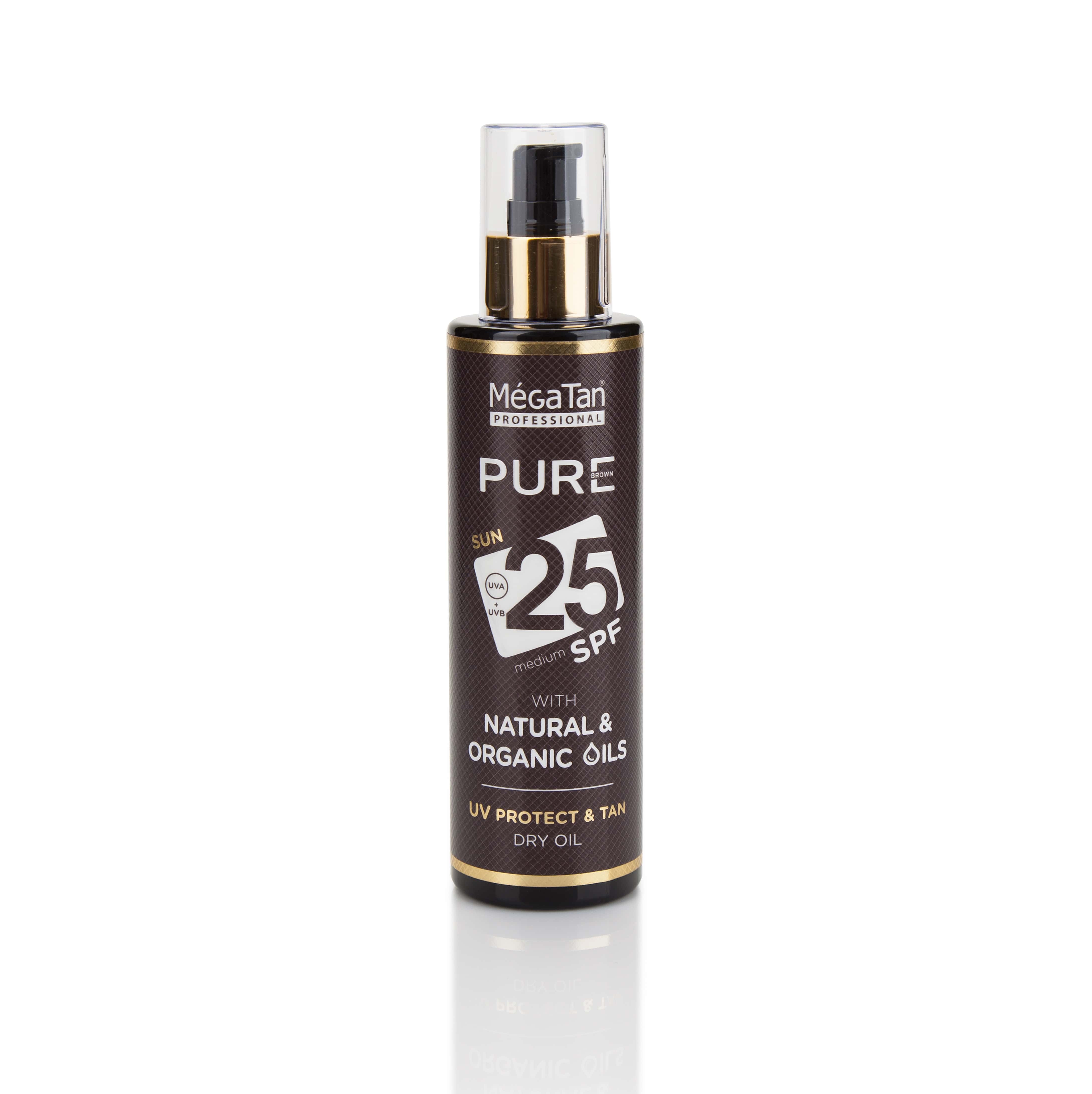 The Natural dry oil Megatan Pure brown absorbs into the skin quickly, providing instant moisture with a finish that isn’t so greasy.